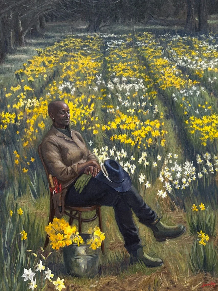 She paints portraits, still life, figures and landscapes in oils. Working from life, she uses traditional materials and techniques in the classical painting traditions handed down by the Old Masters of the 19th Century.